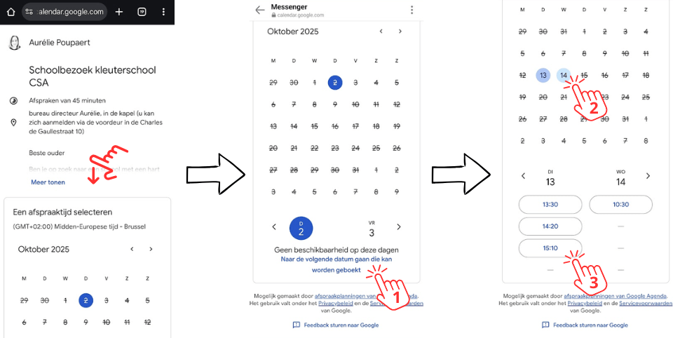 - Klik op "naar de volgende datum gaan die kan worden geboekt". (1)